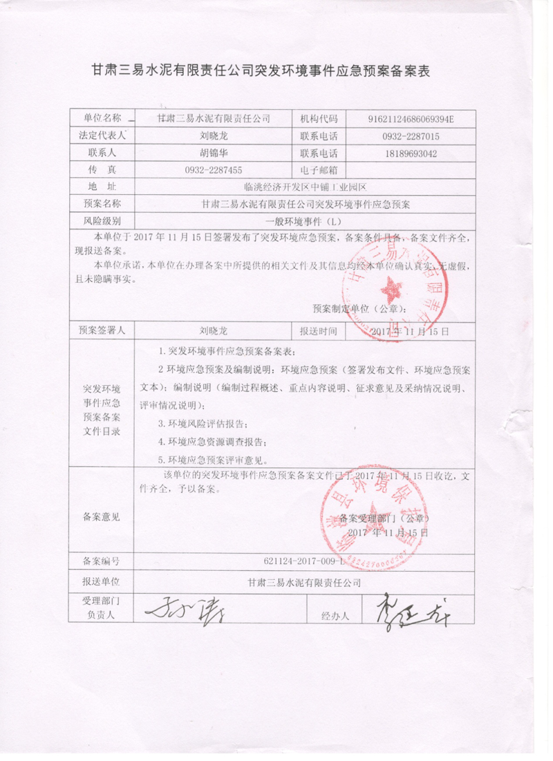 甘肅三易水泥有限責任公司清潔生產(chǎn)驗收意見(jiàn)函